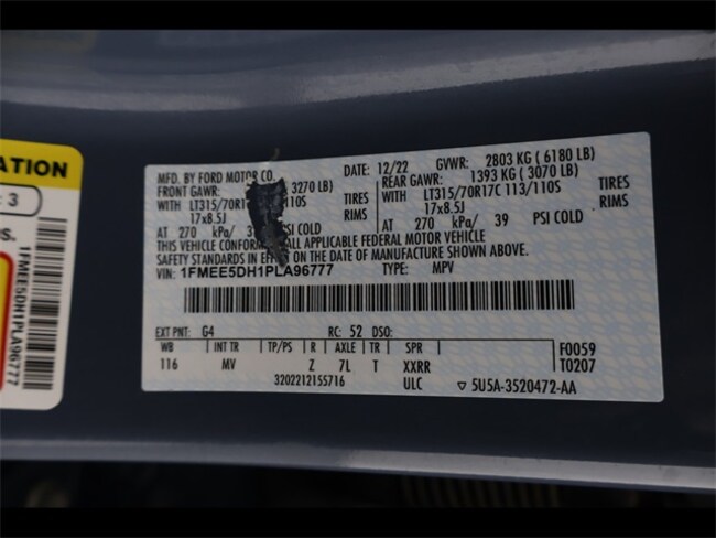 - VIN : 1FMEE5DH1PLA96777