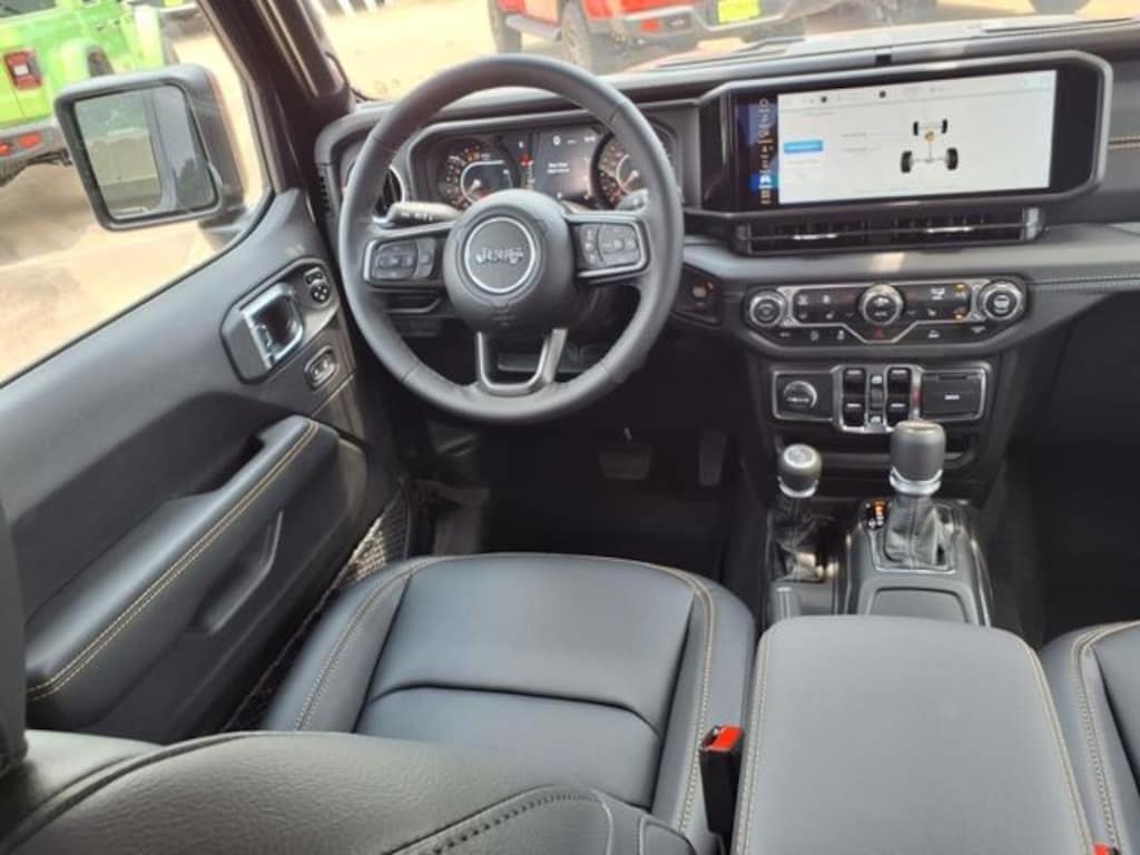 Convenience Group (Corning Gorilla Glass, Daytime Running Lamp System, Emergency/Assistance Call, Front Door Locks 2-Door Passive Entry, Heated Front Seats, Heated Steering Wheel, Remote Start System, and Universal Garage Door Opener), Quick Order Package 24J Texas Trail (97 MPH Vehicle Max Speed Calibration, Advanced Brake Assist, Automatic Headlamps, Body Color 3-Piece Hard Top, Body Color Fender Flares (2-Piece), Deep Tint Sunscreen Windows, Freedom Panel Storage Bag, Full Length Floor Console Premium Armrest, Full Speed Forward Collision Warning Plus, Hard Seat Back, Integrated Radar Camera Module (IRCM), Leather Wrapped Park Brake Handle, Leather Wrapped Shift Knob, Power 4-Way Driver Lumbar Adjust, Power 4-Way Passenger Lumbar Adjust, Power Adjust 8-Way Driver Seat, Power Adjust 8-Way Front Passenger Seat, Power Heated Mirrors, Premium Door Trim Panel, Premium McKinley Trimmed Seats, Premium Wrapped Steering Wheel, Rear Armrest w/Cupholder Seat, Rear Sliding Window, Rear Window Defroster, Security Alarm, Sun Visors w/Illuminated Vanity Mirrors, Texas Trail, Texas Trail Tailgate & Hood Decals, Wheels: 17" x 7.5" Painted Black, and Willys Suspension), Technology Group (115V Auxiliary Power Outlet, 12.3" Touchscreen Display, 400W Inverter, 4G LTE Wi-Fi Hot Spot, Alexa Built-In, Apple CarPlay, Auto-Dimming Rear-View Mirror, Bluetooth Wireless Speaker, Connected Travel & Traffic Services, Connectivity - US/Canada, Google Android Auto, GPS Antenna Input, GPS Navigation, HD Radio, Integrated Center Stack Radio, Integrated Voice Command w/Bluetooth, Media Hub w/2 Charge Only USBs, Radio: Uconnect 5 Nav w/12.3" Display, SiriusXM Radio Service, SiriusXM w/360L, and USB Host Flip), 110 MPH Vehicle Max Speed Calibration, 3.73 Rear Axle Ratio, 4-Wheel Disc Brakes, 8 Speakers, ABS brakes, Air Conditioning, Alpine Premium Audio System, AM/FM radio: SiriusXM, Apple CarPlay/Android Auto, Brake assist, Cloth Low-Back Bucket Seats, Compass, Delay-off headlights, Driver door bin, Driver vanity mirror, Dual front impact airbags, Dual front side impact airbags, Electronic Stability Control, Front anti-roll bar, Front Bucket Seats, Front Center Armrest w/Storage, Front fog lights, Front License Plate Bracket, Front reading lights, Illuminated entry, Integrated roll-over protection, Low tire pressure warning, MOPAR All-Weather Slush Mats, Normal Duty Suspension, Occupant sensing airbag, Outside temperature display, Overhead airbag, Panic alarm, ParkView Rear Back-Up Camera, Passenger door bin, Passenger vanity mirror, Power steering, Power windows, Radio data system, Radio: Uconnect 5 w/12.3" Display, Rear anti-roll bar, Rear reading lights, Remote keyless entry, Side Steps, Speed control, Split folding rear seat, Steering wheel mounted audio controls, Tachometer, Telescoping steering wheel, Tilt steering wheel, Traction control, Trip computer, Variably intermittent wipers, Voltmeter, and Wheels: 17" x 7.5" Black Steel Styled.