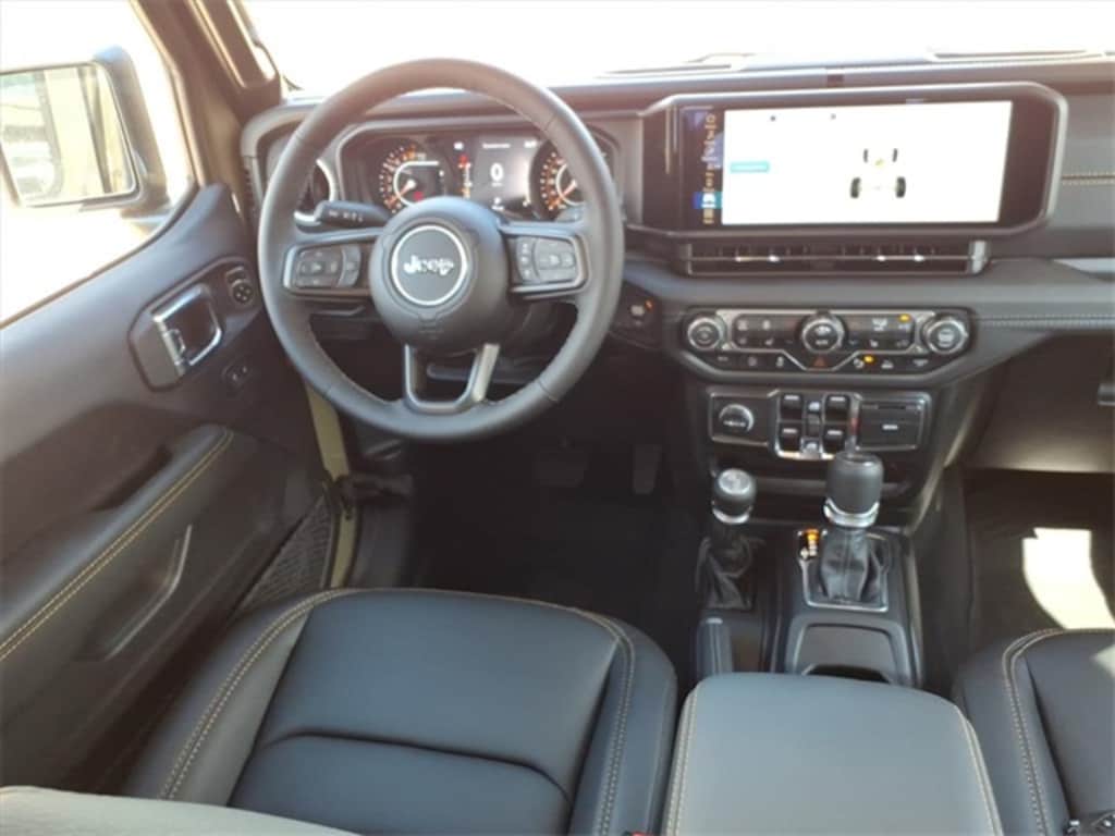 Convenience Group (Corning Gorilla Glass, Daytime Running Lamp System, Emergency/Assistance Call, Front Door Locks 2-Door Passive Entry, Heated Front Seats, Heated Steering Wheel, Remote Start System, and Universal Garage Door Opener), Quick Order Package 24J Texas Trail (97 MPH Vehicle Max Speed Calibration, Advanced Brake Assist, Automatic Headlamps, Body Color 3-Piece Hard Top, Body Color Fender Flares (2-Piece), Deep Tint Sunscreen Windows, Freedom Panel Storage Bag, Full Length Floor Console Premium Armrest, Full Speed Forward Collision Warning Plus, Hard Seat Back, Integrated Radar Camera Module (IRCM), Leather Wrapped Park Brake Handle, Leather Wrapped Shift Knob, Power 4-Way Driver Lumbar Adjust, Power 4-Way Passenger Lumbar Adjust, Power Adjust 8-Way Driver Seat, Power Adjust 8-Way Front Passenger Seat, Power Heated Mirrors, Premium Door Trim Panel, Premium McKinley Trimmed Seats, Premium Wrapped Steering Wheel, Rear Armrest w/Cupholder Seat, Rear Sliding Window, Rear Window Defroster, Security Alarm, Sun Visors w/Illuminated Vanity Mirrors, Texas Trail, Texas Trail Tailgate & Hood Decals, Wheels: 17" x 7.5" Painted Black, and Willys Suspension), Safety Group (Auto High Beam Headlamp Control, Blind Spot & Cross Path Detection, LED Taillamps, and ParkSense Rear Park Assist System), Technology Group (115V Auxiliary Power Outlet, 12.3" Touchscreen Display, 400W Inverter, 4G LTE Wi-Fi Hot Spot, Alexa Built-In, Apple CarPlay, Auto-Dimming Rear-View Mirror, Bluetooth Wireless Speaker, Connected Travel & Traffic Services, Connectivity - US/Canada, Google Android Auto, GPS Antenna Input, GPS Navigation, HD Radio, Integrated Center Stack Radio, Integrated Voice Command w/Bluetooth, Media Hub w/2 Charge Only USBs, Radio: Uconnect 5 Nav w/12.3" Display, SiriusXM Radio Service, SiriusXM w/360L, and USB Host Flip), 110 MPH Vehicle Max Speed Calibration, 3.73 Rear Axle Ratio, 4-Wheel Disc Brakes, 8 Speakers, ABS brakes, Air Conditioning, Alpine Premium Audio System, AM/FM radio: SiriusXM, Apple CarPlay/Android Auto, Brake assist, Cloth Low-Back Bucket Seats, Compass, Delay-off headlights, Driver door bin, Driver vanity mirror, Dual front impact airbags, Dual front side impact airbags, Electronic Stability Control, Front anti-roll bar, Front Bucket Seats, Front Center Armrest w/Storage, Front fog lights, Front License Plate Bracket, Front reading lights, Illuminated entry, Integrated roll-over protection, Jeep Trail Rated Kit, Low tire pressure warning, MOPAR All-Weather Slush Mats, MOPAR Spray In Bedliner, MOPAR Tool Kit JPP/Jeep, Normal Duty Suspension, Occupant sensing airbag, Outside temperature display, Overhead airbag, Panic alarm, ParkView Rear Back-Up Camera, Passenger door bin, Passenger vanity mirror, Power steering, Power windows, Radio data system, Radio: Uconnect 5 w/12.3" Display, Rear anti-roll bar, Rear reading lights, Remote keyless entry, Side Steps, Speed control, Split folding rear seat, Steering wheel mounted audio controls, Tachometer, Telescoping steering wheel, Tilt steering wheel, Traction control, Trip computer, Variably intermittent wipers, Voltmeter, and Wheels: 17" x 7.5" Black Steel Styled.