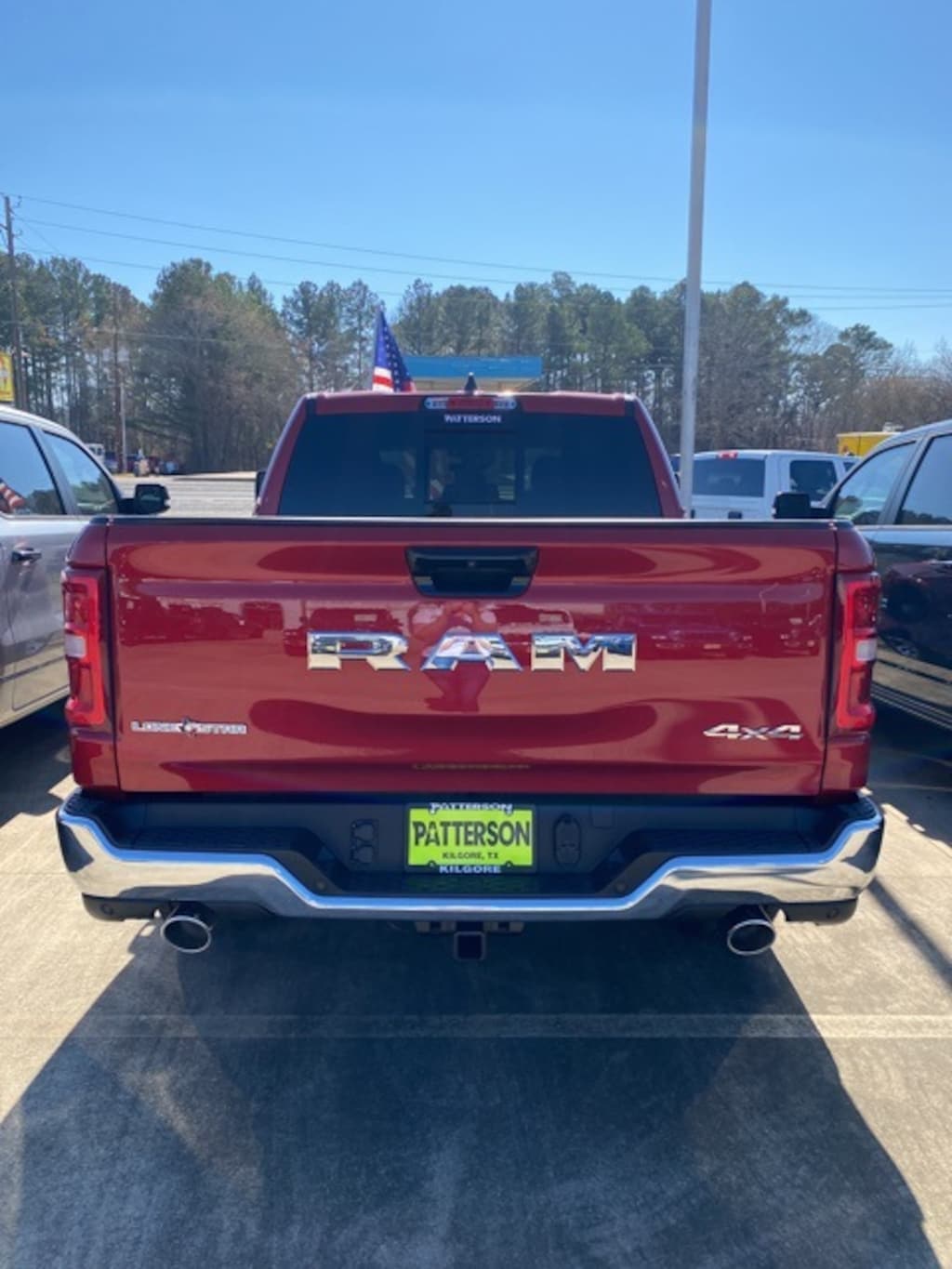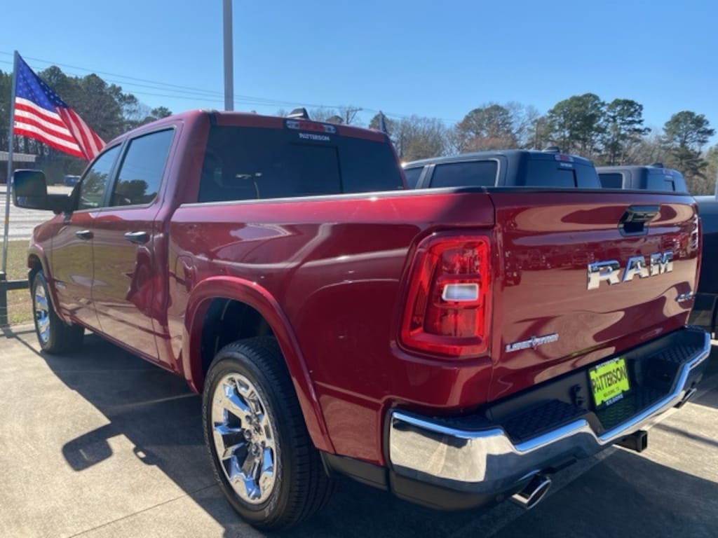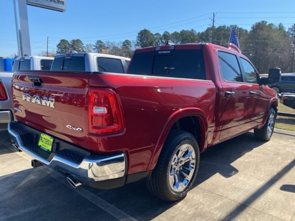 Big Horn Level 2 Equipment Group (115V Auxiliary Power Outlet, 115V Auxiliary Rear Power Outlet, 12" Touchscreen Display, 2nd Row in Floor Storage Bins, 3 Rear Seat Head Restraints, 4 Way Front Headrests, 400W Inverter, 4G LTE Wi-Fi Hot Spot, 9 Amplified Speakers with Subwoofer, Air Conditioning ATC with Dual Zone Control, Apple CarPlay, Auto Power-Folding Mirrors, Auto-Dimming Exterior Driver Mirror, Auto-Dimming Rear-View Mirror, Black Exterior Mirrors, Black Premium Power Mirrors, Body Color Fender Flares, Bucket Seats, Center Console Parts Module, Cluster 7.0" TFT Color Display, Configurable Drive Mode, Connected Travel and Traffic Services, Connectivity - US/Canada, Convex Wide-Angle Exterior Mirror Insert, Deluxe Cloth Bucket Seats, Disassociated Touchscreen Display, Exterior Mirrors Courtesy Lamps, Exterior Mirrors with Heating Element, Exterior Mirrors with Supplemental Signals, Front Seat Back Map Pockets, Full Length Floor Console, Global Telematics Box Module, Glove Box Lamp, Google Android Auto, GPS Antenna Input, GPS Navigation, HD Radio, Heated Front Seats, Heated Steering Wheel, Integrated Center Stack Radio, Integrated Voice Command with Bluetooth, Leather Wrapped Steering Wheel, LED Dome Lamp with on/Off Switch, LED Footwell Lighting, Manual Adjust 4-Way Front Passenger Seat, Media Hub with 2 Charge Only USBs, Overhead LED Lamps, Power 2-Way Driver Lumbar Adjust, Power Adjust 8-Way Driver Seat, Power Adjustable Pedals, Premium Overhead Console, Radio: Uconnect 5 Navigation with 12.0" Display, Rear 60/40 Folding Seat, Rear Center Armrest, Rear Power Sliding Window, Rear Window Defroster, Remote Tailgate Release, Security Alarm, SiriusXM Radio Service, SiriusXM with 360L, Steering Wheel Mounted Audio Controls, Sun Visors with Illuminated Vanity Mirrors, Universal Garage Door Opener, and USB Host Flip), Quick Order Package 21R Lone Star (Lone Star Badge), Towing Technology Group (Trailer Hitch Line-Up Assist), Trailer Tow Group (Accent Color Tailgate Handle, Black Trailer Tow Power Mirrors, Manual Folding Exterior Mirrors, Manual Telescoping Mirrors, Mirror Clearance/Running Lights, Power-Adjustable Convex Aux Mirrors, Trailer Brake Control, Trailer Reverse Steering Control, Trailer Tire Pressure Monitoring System, and Trailer Tow Mirrors), 12-Way/1-Way Trailer Connector, 33 Gallon Fuel Tank, 4-Wheel Disc Brakes, 48V Belt Starter Generator, 6 Speakers, ABS brakes, Air Conditioning, Alloy wheels, AM/FM radio, Anti-Spin Differential Rear Axle, Apple CarPlay/Android Auto, Auto High-beam Headlights, Brake assist, Bumpers: chrome, Cloth Bucket Seats, Cluster 12" TFT Color Display, Compass, Delay-off headlights, Driver door bin, Dual front impact airbags, Dual front side impact airbags, Electronic Stability Control, Front anti-roll bar, Front Bucket Seats, Front Center Armrest w/Storage, Front fog lights, Front License Plate Bracket, Front reading lights, Front wheel independent suspension, Fully automatic headlights, Heated door mirrors, Illuminated entry, Low tire pressure warning, Manual Adjust 4-Way Driver Seat, Occupant sensing airbag, Outside temperature display, Overhead airbag, Overhead console, Panic alarm, ParkView Rear Back-Up Camera, Passenger door bin, Passenger vanity mirror, Power door mirrors, Power steering, Power windows, Radio data system, Radio: Uconnect 5 W with 8.4" Display, RAM Grille Badge - Chrome, Rear anti-roll bar, Rear step bumper, Rear Wheelhouse Liners, Remote keyless entry, Speed control, Supplier Part Tracking (J-1), Surround View Camera System, Tachometer, Telescoping steering wheel, Tilt steering wheel, Traction control, Trip computer, Variably intermittent wipers, and Voltmeter.