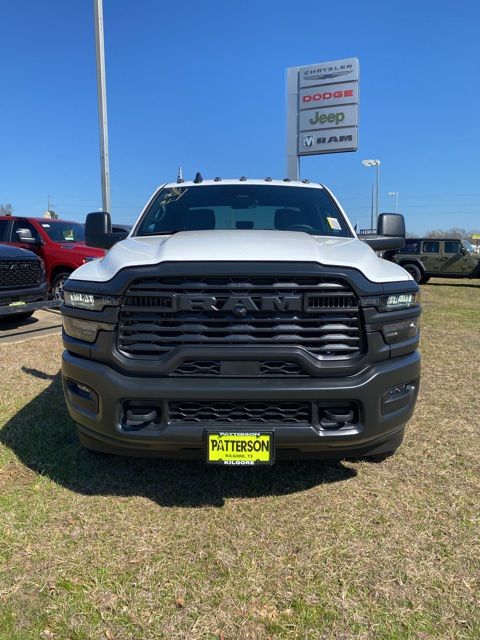 Quick Order Package 25A Tradesman, 11.50" Dual Wheels Rear Axle, 2 Way Rear Headrest Seat, 4-Wheel Disc Brakes, 40/20/40 Split Bench Seat, 4G LTE Wi-Fi Hot Spot, 52 and 22 Gallon Dual Fuel Tanks, 6 Speakers, 6000# Front Axle with Hub Extension, ABS brakes, Air Conditioning, AM/FM radio: SiriusXM, Apple CarPlay, Apple CarPlay/Android Auto, Black Exterior Mirrors, Black Wheel Center Hub, Cargo and CHMSL Lamp, Center Hub, Compass, Connectivity - US/Canada, Delay-off headlights, Driver door bin, Dual Alternators Rated At 480 Amps, Dual front impact airbags, Dual Rear Wheels, Electronic Stability Control, Emergency communication system: RAM Connect, For Details, Visit DriveUconnect.com, Front anti-roll bar, Front Armrest with Cupholders, Front Center Armrest w/Storage, Front fog lights, Front License Plate Bracket, Front reading lights, Fully automatic headlights, Global Telematics Box Module, Google Android Auto, GPS Antenna Input, HD Vinyl 40/20/40 Split Bench Seat, Illuminated entry, Integrated Voice Command with Bluetooth, Manual Adjust 4-Way Driver Seat, Manual Adjust 4-Way Front Passenger Seat, Manual Folding Exterior Mirrors, Manual Telescoping Mirrors, Manufacturer's Statement of Origin, Nexen Brand Tires, Occupant sensing airbag, Outside temperature display, Overhead console, Panic alarm, ParkView Rear Back-Up Camera, Passenger door bin, Passenger vanity mirror, Power steering, Power windows, Radio data system, Radio: Uconnect 5 with 8.4" Display, Rear anti-roll bar, Rear Folding Seat, Remote keyless entry, Remote USB Port - Charge Only, Speed control, Storage Tray, Tachometer, Temperature and Compass Gauge, Tilt steering wheel, Traction control, Trailer Brake Control, Trailer Light Check, Variably intermittent wipers, Voltmeter, Wheels: 17" x 6.0" Black Painted Steel, and Wheels: 18" x 8.0" Steel PainteD.