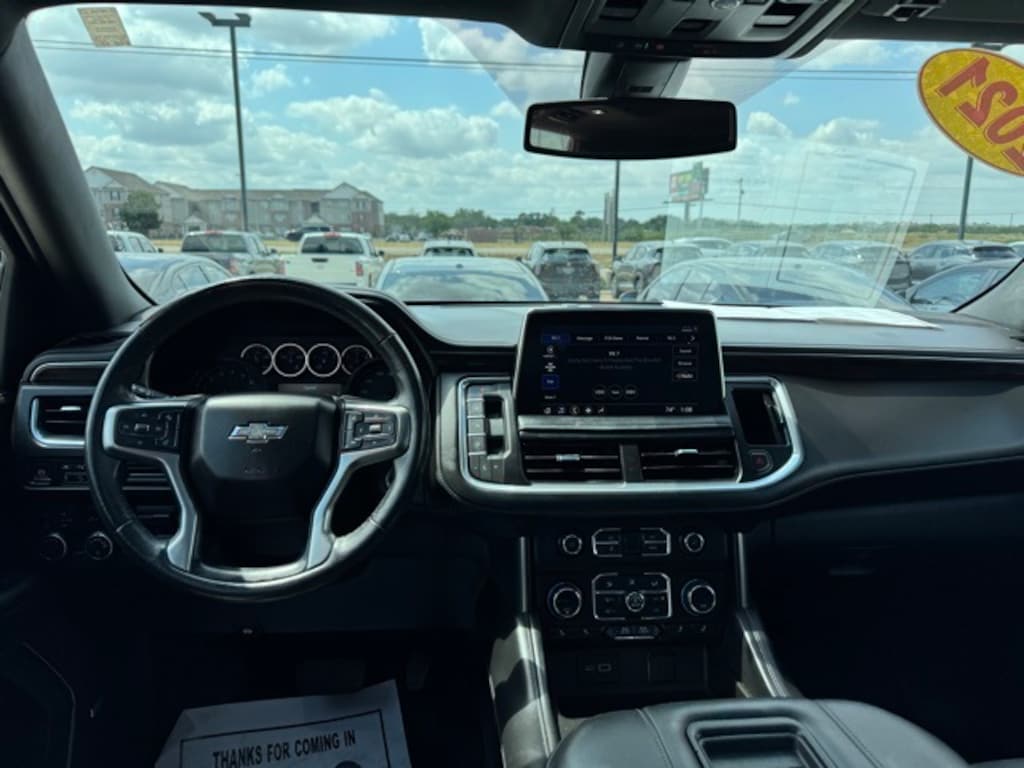 This vehicle includes the following features and options: Advanced Trailering Package (Advanced Trailering System, Hitch Guidance w/Hitch View, and Integrated Trailer Brake Controller), Driver Alert Package (Front & Rear Park Assist, Lane Change Alert w/Side Blind Zone Alert, Lane Keep Assist w/Lane Departure Warning, and Rear Cross Traffic Alert), License Plate Front Mounting Package, Luxury Package (2nd Row Pwr Release 60/40 Split-Folding Bench Seat, 3rd Row 60/40 Power-Folding Split-Bench Seat, Automatic Heated Steering Wheel, HD Surround Vision, Heated 2nd Row Outboard Seats, Memory Settings, Outside Heated Power-Adjustable Mirrors, Power Tilt & Telescopic Steering Column, and Rear Pedestrian Alert), Max Trailering Package (Extra Capacity Cooling System), Preferred Equipment Group 2Z7 (1st & 2nd Row Color-Keyed Carpeted Floor Mats, 2 USB Data Ports, 2-Speed Active Electronic AutoTrac Transfer Case, Auto-Dimming Inside Rear-View Mirror, Black Tubular Assist Steps, Bright Front & Rear Door Sill Plates, Color-Keyed Carpeting Floor Covering, Driver & Front Outboard Passenger Airbags, Floor Console w/Storage Area, Front High-Approach Angle Fascia, Hands-Free Rear Power Programmable Liftgate, HD Radio, Hill Descent Control, Infotainment Display, Leather-Wrapped Steering Wheel, LED Daytime Running Lamps, Memory Settings for Driver, Red Horizontal-Mounted Recovery Hooks, Remote Start, SiriusXM Radio w/360L, and Universal Home Remote), Z71 Signature Package (DISC) (Dual-Pane Power Panoramic Sunroof), 10-Way Power Driver & Passenger Seat Adjusters, 3.23 Rear Axle Ratio, 3rd row seats: split-bench, 4-Wheel Disc Brakes, 9 Speakers, ABS brakes, Air Conditioning, Alloy wheels, AM/FM radio: SiriusXM with 360L, Apple CarPlay/Android Auto, Auto High-beam Headlights, Auto-dimming Rear-View mirror, Automatic temperature control, Bose 9-Speaker Stereo Audio System Feature, Brake assist, Bumpers: body-color, Compass, Delay-off headlights, Driver door bin, Driver vanity mirror, Dual front impact airbags, Dual front side impact airbags, Electronic Stability Control, Emergency communication system: OnStar and Chevrolet connected services capable, Four wheel independent suspension, Front anti-roll bar, Front Bucket Seats, Front Center Armrest, Front dual zone A/C, Front High-Back Reclining Bucket Seats, Front reading lights, Fully automatic headlights, Garage door transmitter, Heated door mirrors, Heated Driver & Front Passenger Seats, Heated front seats, Illuminated entry, Leather Seat Trim, Leather steering wheel, Low tire pressure warning, Memory seat, Occupant sensing airbag, Outside temperature display, Overhead airbag, Overhead console, Panic alarm, Passenger door bin, Passenger vanity mirror, Power door mirrors, Power driver seat, Power Liftgate, Power passenger seat, Power Release 2nd Row Bucket Seats, Power steering, Power windows, Premium audio system: Chevrolet Infotainment 3, Premium Smooth Ride Suspension, Radio: Chevrolet Infotainment 3 Plus System, Rain sensing wipers, Rear air conditioning, Rear anti-roll bar, Rear reading lights, Rear seat center armrest, Rear window defroster, Rear window wiper, Remote keyless entry, Roof rack: rails only, Security system, Speed control, Speed-sensing steering, Split folding rear seat, Spoiler, Steering wheel mounted audio controls, Tachometer, Telescoping steering wheel, Tilt steering wheel, Traction control, Trip computer, Variably intermittent wipers, Voltmeter, and Wheels: 20" x 9" Machined Aluminum.