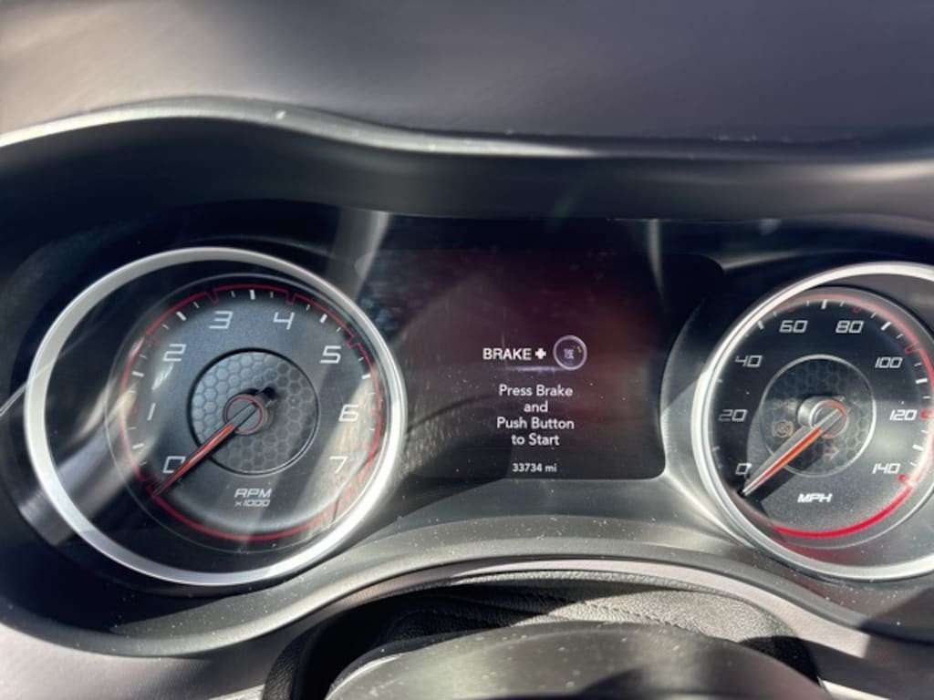 This vehicle includes the following features and options: Quick Order Package 2EH, 4-Wheel Disc Brakes, 6 Speakers, ABS brakes, Air Conditioning, Alloy wheels, AM/FM radio: SiriusXM, Anti-whiplash front head restraints, Apple CarPlay, Apple CarPlay/Android Auto, Auto-dimming Rear-View mirror, Automatic temperature control, Body Color Exterior Mirrors, Brake assist, Bumpers: body-color, Cloth Performance Seats, Compass, Delay-off headlights, Driver door bin, Driver vanity mirror, Dual front impact airbags, Dual front side impact airbags, Electronic Stability Control, Emergency communication system: SiriusXM Guardian, Four wheel independent suspension, Front anti-roll bar, Front Bucket Seats, Front Center Armrest, Front dual zone A/C, Front fog lights, Front License Plate Bracket, Front reading lights, Fully automatic headlights, Garage door transmitter: HomeLink, Google Android Auto, GPS Antenna Input, Heated door mirrors, Illuminated entry, Integrated Center Stack Radio, Integrated Voice Command w/Bluetooth, Knee airbag, Leather Shift Knob, Low tire pressure warning, Media Hub (2 USB, AUX), Occupant sensing airbag, Outside temperature display, Overhead airbag, Overhead console, Panic alarm, ParkView Rear Back-Up Camera, Passenger door bin, Passenger vanity mirror, Power 2-Way Driver Lumbar Adjust, Power door mirrors, Power driver seat, Power steering, Power windows, Radio: Uconnect 4C w/8.4" Display, Rear anti-roll bar, Rear reading lights, Rear seat center armrest, Rear window defroster, Remote keyless entry, Speed control, Speed-Sensitive Wipers, Split folding rear seat, Spoiler, Sport steering wheel, Steering wheel mounted audio controls, Tachometer, Telescoping steering wheel, Tilt steering wheel, Traction control, Trip computer, USB Host Flip, Variably intermittent wipers, and Wheels: 20" x 8" Satin Carbon Painted. Recent Arrival! Odometer is 26377 miles below market average! 19/30 City/Highway MPG