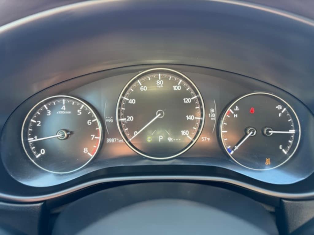 This vehicle includes the following features and options: 12 Speakers, 4-Wheel Disc Brakes, 4.095 Axle Ratio, ABS brakes, Air Conditioning, Alloy wheels, AM/FM radio: SiriusXM, AppLink/Apple CarPlay and Android Auto, Auto High-beam Headlights, Automatic temperature control, Brake assist, Bumpers: body-color, Compass, Delay-off headlights, Driver door bin, Driver vanity mirror, Dual front impact airbags, Dual front side impact airbags, Electronic Stability Control, Emergency communication system: Mazda Connected Services (3-year complimentary trial included), Exterior Parking Camera Rear, Front anti-roll bar, Front Bucket Seats, Front Center Armrest, Front dual zone A/C, Front reading lights, Front wheel independent suspension, Fully automatic headlights, Heads-Up Display, Heated door mirrors, Heated Front Bucket Seats, Heated front seats, Illuminated entry, Knee airbag, Leather Seat Trim, Leather Shift Knob, Leather steering wheel, Low tire pressure warning, MAZDA CONNECT Infotainment System, Memory seat, Navigation system: MAZDA CONNECT, Occupant sensing airbag, Outside temperature display, Overhead airbag, Overhead console, Panic alarm, Passenger door bin, Passenger vanity mirror, Power door mirrors, Power driver seat, Power Liftgate, Power moonroof, Power steering, Power windows, Radio data system, Radio: AM/FM/HD Audio System w/Mazda Navigation, Rain sensing wipers, Rear seat center armrest, Rear side impact airbag, Rear window defroster, Rear window wiper, Remote keyless entry, Speed control, Speed-sensing steering, Split folding rear seat, Spoiler, Steering wheel mounted audio controls, Tachometer, Telescoping steering wheel, Tilt steering wheel, Traction control, Trip computer, Turn signal indicator mirrors, Variably intermittent wipers, and Wheels: 18" x 7J Aluminum Alloy. 26/33 City/Highway MPG