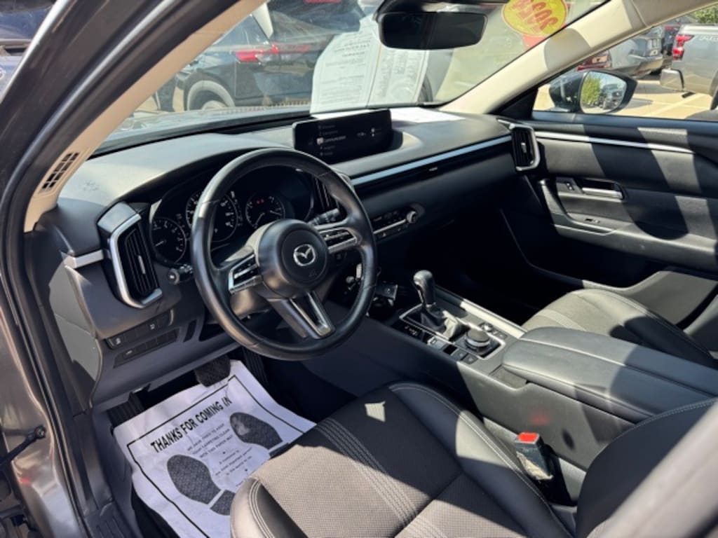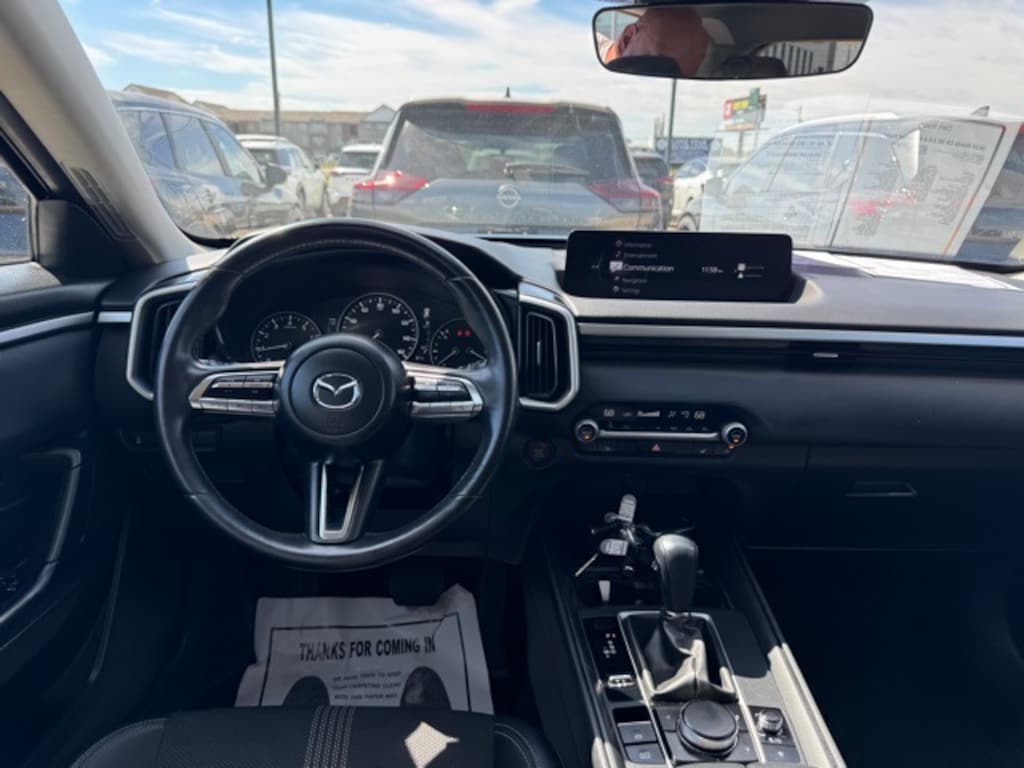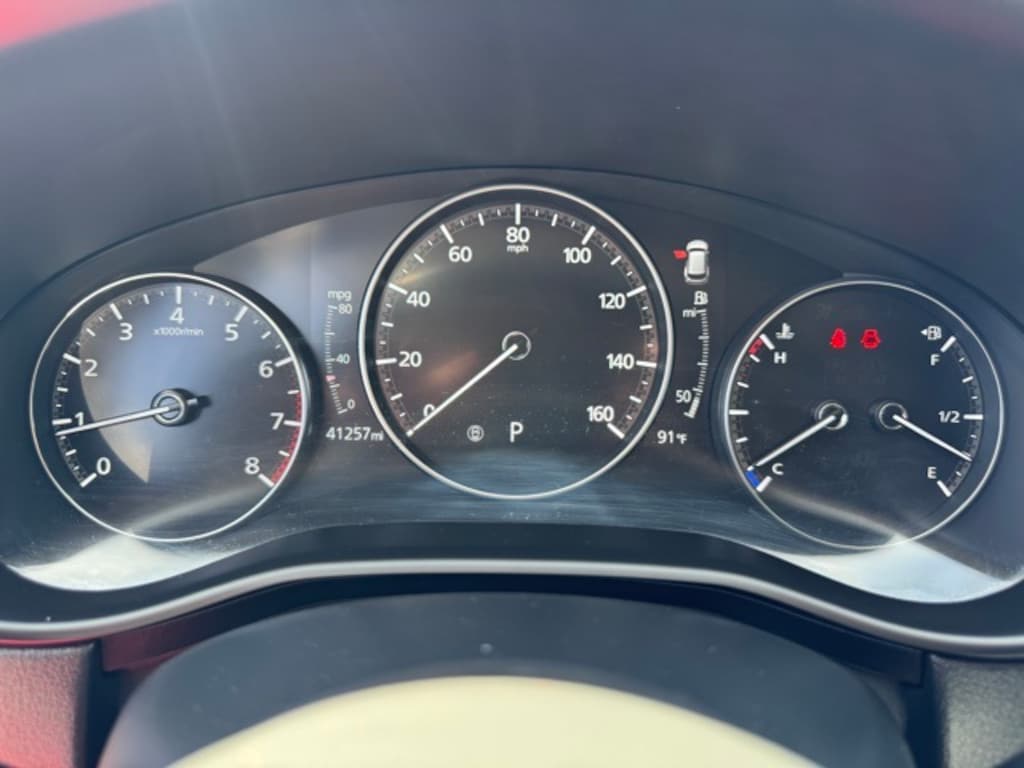 This vehicle includes the following features and options: 4-Wheel Disc Brakes, 4.367 Axle Ratio, 8 Speakers, ABS brakes, Air Conditioning, Alloy wheels, AM/FM radio, AppLink/Apple CarPlay and Android Auto, Auto High-beam Headlights, Automatic temperature control, Brake assist, Bumpers: body-color, Delay-off headlights, Driver door bin, Driver vanity mirror, Dual front impact airbags, Dual front side impact airbags, Electronic Stability Control, Emergency communication system: MAZDA CONNECT, Exterior Parking Camera Rear, Front anti-roll bar, Front Bucket Seats, Front Center Armrest, Front dual zone A/C, Front reading lights, Front wheel independent suspension, Fully automatic headlights, Half Leatherette Seat Trim, Heated door mirrors, Heated Front Bucket Seats, Heated front seats, Illuminated entry, Knee airbag, Leather Shift Knob, Leather steering wheel, Low tire pressure warning, Machine Gray Metallic Paint Charge, Occupant sensing airbag, Outside temperature display, Overhead airbag, Overhead console, Panic alarm, Passenger door bin, Passenger vanity mirror, Power door mirrors, Power driver seat, Power Liftgate, Power steering, Power windows, Radio data system, Radio: AM/FM/HD Audio System, Rain sensing wipers, Rear seat center armrest, Rear window defroster, Rear window wiper, Remote keyless entry, Speed control, Speed-sensing steering, Split folding rear seat, Spoiler, Steering wheel mounted audio controls, Tachometer, Telescoping steering wheel, Tilt steering wheel, Traction control, Trip computer, Turn signal indicator mirrors, Variably intermittent wipers, and Wheels: 17" x 7J Aluminum Alloy. 24/30 City/Highway MPG