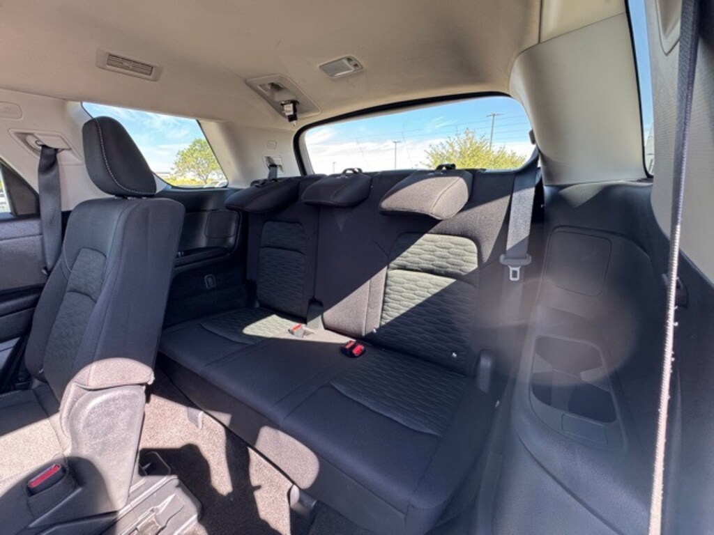 This vehicle includes the following features and options: 18" Painted Alloy Wheels, 3rd row seats: bench, 4-Wheel Disc Brakes, 6 Speakers, ABS brakes, Air Conditioning, Alloy wheels, AM/FM radio: SiriusXM, Auto High-beam Headlights, Automatic temperature control, Axle Ratio: 4.334, Brake assist, Bumpers: body-color, Cloth Seating Surfaces, Delay-off headlights, Driver door bin, Driver vanity mirror, Dual front impact airbags, Dual front side impact airbags, Electronic Stability Control, Emergency communication system: NissanConnect Services, Four wheel independent suspension, Front anti-roll bar, Front Bucket Seats, Front Center Armrest, Front dual zone A/C, Front reading lights, Fully automatic headlights, Heated door mirrors, Heated Front Bucket Seats, Heated front seats, Illuminated entry, Knee airbag, Leather steering wheel, Low tire pressure warning, NissanConnect featuring Apple CarPlay and Android Auto, Occupant sensing airbag, Outside temperature display, Overhead airbag, Overhead console, Panic alarm, Passenger door bin, Passenger vanity mirror, Power door mirrors, Power driver seat, Power steering, Power windows, Radio data system, Radio: AM/FM Audio System w/NissanConnect, Rear air conditioning, Rear anti-roll bar, Rear Parking Sensors, Rear reading lights, Rear seat center armrest, Rear side impact airbag, Rear window defroster, Rear window wiper, Reclining 3rd row seat, Remote keyless entry, Security system, Speed control, Speed-sensing steering, Split folding rear seat, Spoiler, Steering wheel mounted audio controls, Tachometer, Telescoping steering wheel, Tilt steering wheel, Traction control, Trip computer, Turn signal indicator mirrors, and Variably intermittent wipers. 20/27 City/Highway MPG