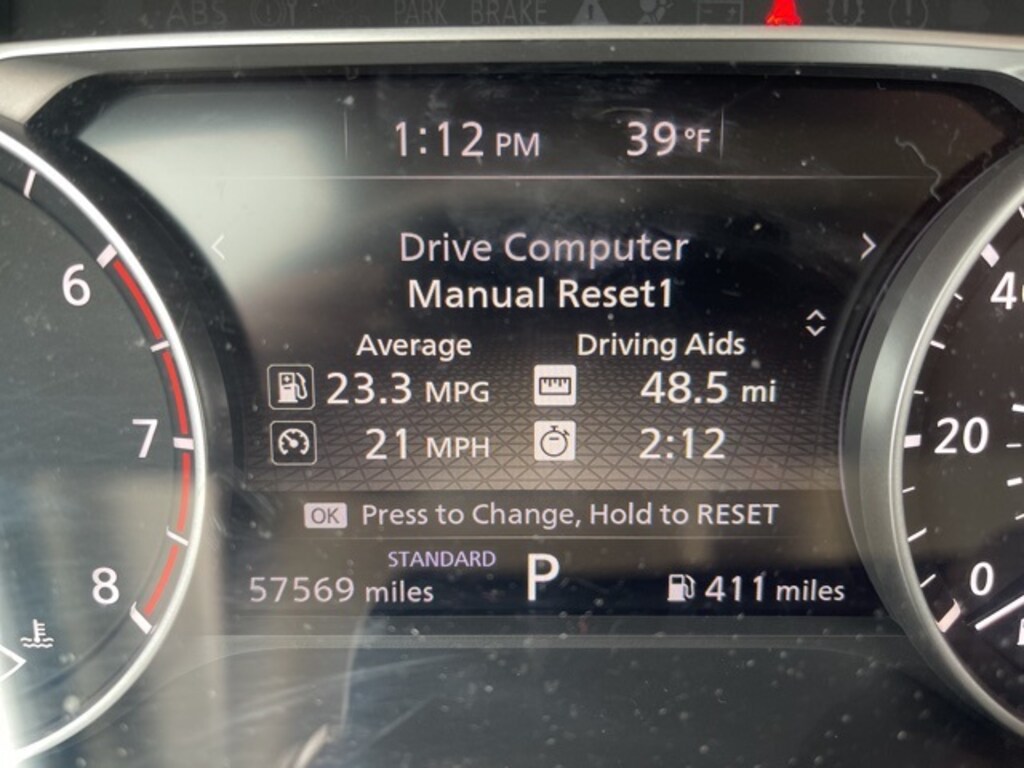 This vehicle includes the following features and options: 17" Aluminum Alloy Wheels, 4 Speakers, 4-Wheel Disc Brakes, 5.604 Axle Ratio, ABS brakes, Air Conditioning, Alloy wheels, AM/FM Radio, AM/FM radio: SiriusXM, Auto High-beam Headlights, Blind Spot Warning, Brake assist, Bumpers: body-color, Cloth Seat Trim, Delay-off headlights, Driver door bin, Driver vanity mirror, Dual front impact airbags, Dual front side impact airbags, Electronic Stability Control, First Aid Kit, Floor Mats w/1-Piece Cargo Area Protector, Four wheel independent suspension, Front anti-roll bar, Front Bucket Seats, Front Center Armrest, Front reading lights, Fully automatic headlights, Illuminated entry, Knee airbag, Low tire pressure warning, NissanConnect featuring Apple CarPlay and Android Auto, Occupant sensing airbag, Outside temperature display, Overhead airbag, Overhead console, Panic alarm, Passenger door bin, Passenger vanity mirror, Power door mirrors, Power steering, Power windows, Radio data system, Rear anti-roll bar, Rear Parking Sensors, Rear seat center armrest, Rear side impact airbag, Rear window defroster, Rear window wiper, Remote keyless entry, Speed control, Speed-Sensitive Wipers, Split folding rear seat, Spoiler, Steering wheel mounted audio controls, Tachometer, Telescoping steering wheel, Tilt steering wheel, Traction control, Trip computer, and Variably intermittent wipers. Recent Arrival! 30/37 City/Highway MPG