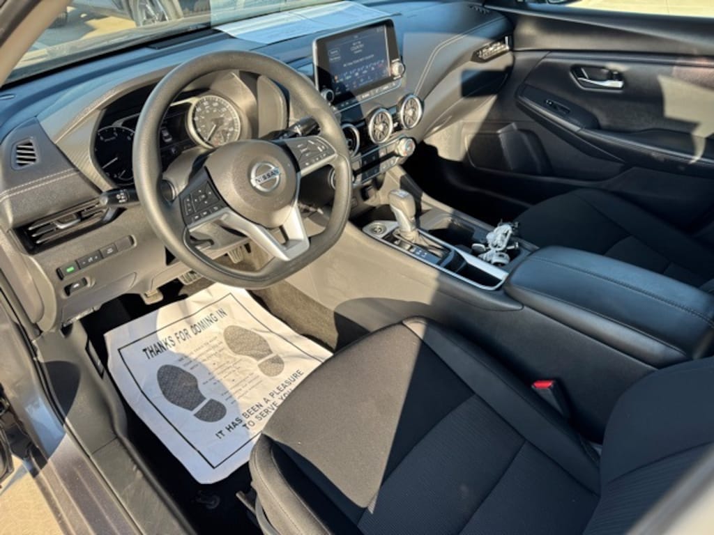 This vehicle includes the following features and options: 16" Alloy Wheels, 4-Wheel Disc Brakes, 6 Speakers, ABS brakes, Air Conditioning, Alloy wheels, AM/FM radio: SiriusXM, Auto High-beam Headlights, Blind Spot Warning, Brake assist, Bumpers: body-color, Delay-off headlights, Driver door bin, Driver vanity mirror, Dual front impact airbags, Dual front side impact airbags, Electronic Stability Control, Four wheel independent suspension, Front anti-roll bar, Front Bucket Seats, Front Center Armrest, Front reading lights, Fully automatic headlights, Heated door mirrors, Illuminated entry, Knee airbag, Low tire pressure warning, NissanConnect featuring Apple CarPlay and Android Auto, Occupant sensing airbag, Outside temperature display, Overhead airbag, Overhead console, Panic alarm, Passenger door bin, Passenger vanity mirror, Power door mirrors, Power steering, Power windows, Premium Cloth Seat Trim, Radio data system, Radio: AM/FM w/RDS/MP3/Aux-In, Rear anti-roll bar, Rear Parking Sensors, Rear side impact airbag, Rear window defroster, Remote keyless entry, Security system, Speed control, Speed-sensing steering, Split folding rear seat, Steering wheel mounted audio controls, Tachometer, Telescoping steering wheel, Tilt steering wheel, Traction control, Trip computer, and Variably intermittent wipers. 29/39 City/Highway MPG