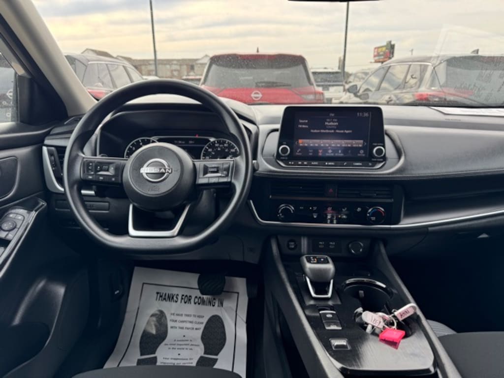 This vehicle includes the following features and options: 17" Aluminum Alloy Wheels, 4 Speakers, 4-Wheel Disc Brakes, 5.676 Axle Ratio, ABS brakes, Air Conditioning, Alloy wheels, AM/FM radio: SiriusXM, Auto High-beam Headlights, Blind Spot Warning, Brake assist, Bumpers: body-color, Cloth Seat Trim, Delay-off headlights, Driver door bin, Driver vanity mirror, Dual front impact airbags, Dual front side impact airbags, Electronic Stability Control, First Aid Kit, Floor Mats w/1-Piece Cargo Area Protector, Four wheel independent suspension, Front anti-roll bar, Front Bucket Seats, Front Center Armrest, Front reading lights, Fully automatic headlights, Illuminated entry, Knee airbag, Low tire pressure warning, NissanConnect featuring Apple CarPlay and Android Auto, Occupant sensing airbag, Outside temperature display, Overhead airbag, Overhead console, Panic alarm, Passenger door bin, Passenger vanity mirror, Power door mirrors, Power steering, Power windows, Radio data system, Radio: AM/FM NissanConnect, Rear anti-roll bar, Rear Parking Sensors, Rear seat center armrest, Rear side impact airbag, Rear window defroster, Rear window wiper, Remote keyless entry, Speed control, Speed-Sensitive Wipers, Split folding rear seat, Spoiler, Steering wheel mounted audio controls, Tachometer, Telescoping steering wheel, Tilt steering wheel, Traction control, Trip computer, and Variably intermittent wipers. Odometer is 5726 miles below market average! 30/37 City/Highway MPG