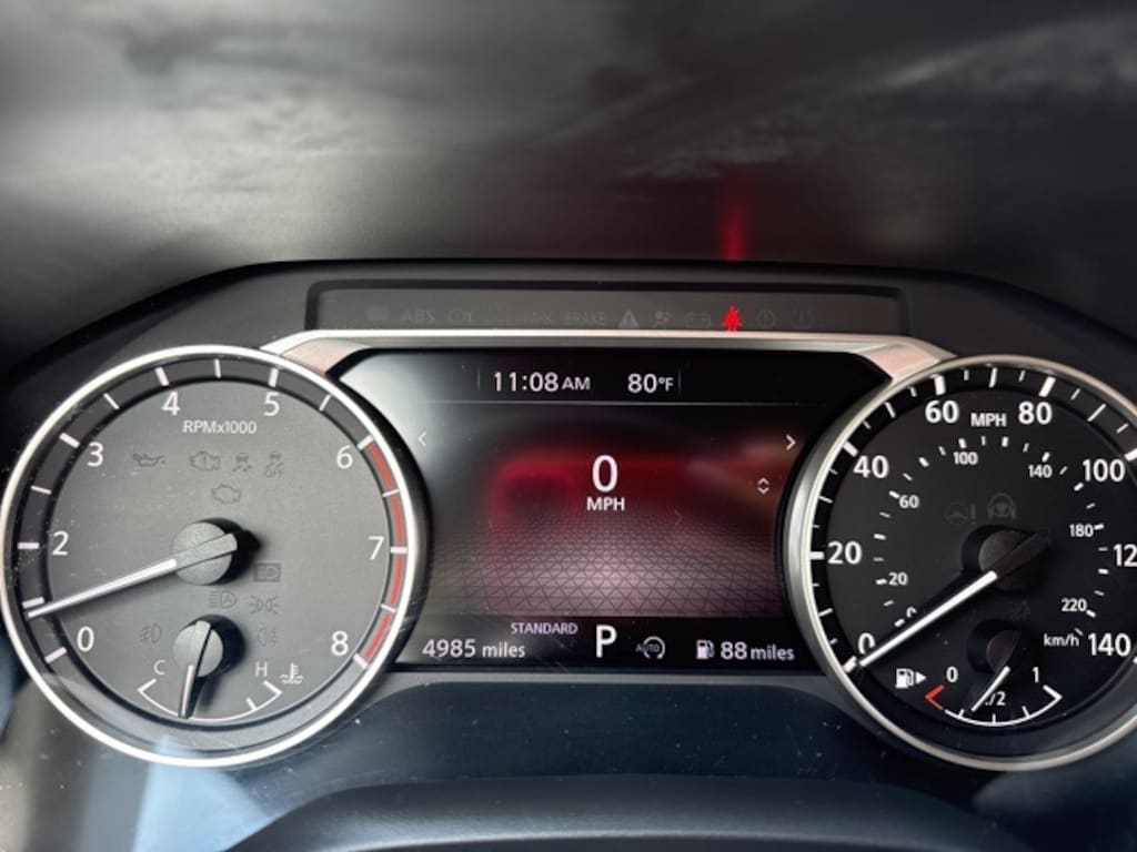 This vehicle includes the following features and options: 4-Wheel Disc Brakes, 5.676 Axle Ratio, 6 Speakers, ABS brakes, Air Conditioning, Alloy wheels, AM/FM radio: SiriusXM, Auto High-beam Headlights, Automatic temperature control, Black Splash Guards (Set of 4), Brake assist, Bumpers: body-color, Chrome Rear Bumper Protector, Cloth Seat Trim w/Patterned Inserts, Delay-off headlights, Driver door bin, Driver vanity mirror, Dual front impact airbags, Dual front side impact airbags, Electronic Stability Control, Emergency communication system: NissanConnect Services, First Aid Kit, Floor Mats w/1-Piece Cargo Area Protector, Four wheel independent suspension, Front anti-roll bar, Front Bucket Seats, Front Center Armrest, Front dual zone A/C, Front reading lights, Fully automatic headlights, Heated door mirrors, Illuminated entry, Knee airbag, Low tire pressure warning, NissanConnect featuring Apple CarPlay and Android Auto, Occupant sensing airbag, Outside temperature display, Overhead airbag, Overhead console, Panic alarm, Passenger door bin, Passenger vanity mirror, Power door mirrors, Power driver seat, Power Liftgate, Power steering, Power windows, Radio data system, Radio: AM/FM NissanConnect, Rear anti-roll bar, Rear Parking Sensors, Rear seat center armrest, Rear side impact airbag, Rear window defroster, Rear window wiper, Remote keyless entry, Speed control, Speed-Sensitive Wipers, Split folding rear seat, Spoiler, Steering wheel mounted audio controls, Tachometer, Telescoping steering wheel, Tilt steering wheel, Traction control, Trip computer, Variably intermittent wipers, and Wheels: 18" Dark Painted Machine Finished Alloy.