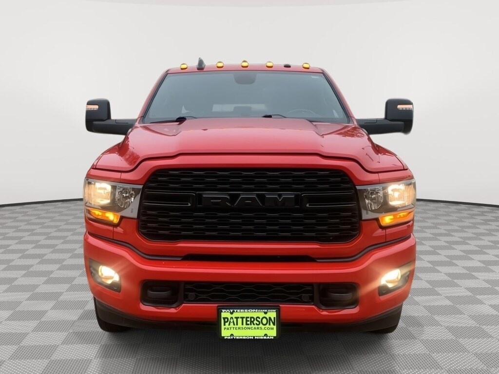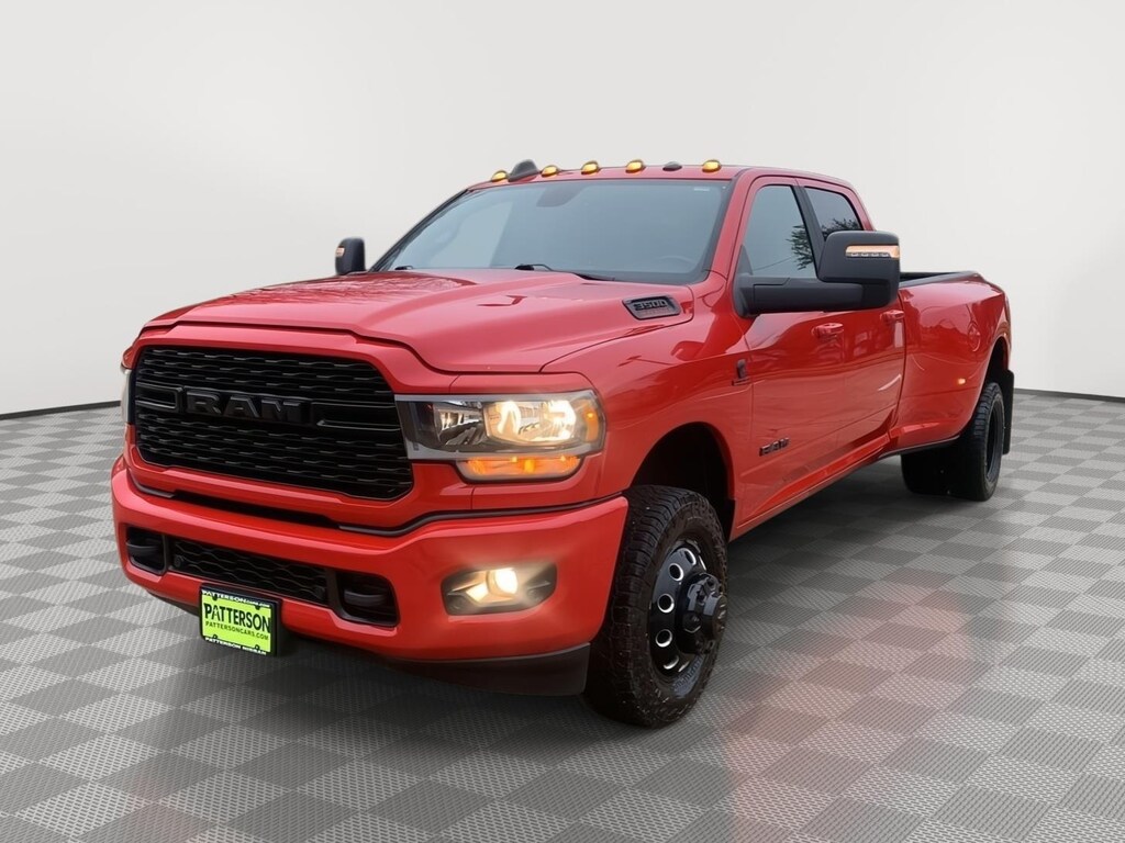 ENGINE: 6.7L I6 CUMMINS TURBO DIESEL, TRANSMISSION: 6-SPEED AUTOMATIC 68RFE, QUICK ORDER PACKAGE 2HZ BIG HORN, 3.73 AXLE RATIO, WHEELS: 17 X 6.0 BLACK MACHINED ALUMINUM, TIRES: LT235/80R17E BSW AS, FLAME RED CLEARCOAT, BLACK, PREMIUM CLOTH BUCKET SEATS, GVWR: 14,000 LBS, HEATED SEATS & WHEEL GROUP, NIGHT EDITION, DUAL REAR WHEELS, LEVEL 1 EQUIPMENT GROUP, 220 AMP ALTERNATOR, 50 GALLON FUEL TANK, REAR WHEELHOUSE LINERS, MOPAR SPRAY IN BEDLINER, FRONT LICENSE PLATE BRACKET, FRONT FOG LAMPS, CLEARANCE LAMPS, RADIO: UCONNECT 5 NAV W/12.0 DISPLAY, 9 ALPINE SPEAKERS W/SUBWOOFER, POWER 2-WAY DRIVER LUMBAR ADJUST, REMOTE START SYSTEM, MOPAR FRONT & REAR RUBBER FLOOR MATS, CTR STOP LAMP W/CARGO VIEW CAMERA, PARKSENSE FRONT/REAR PARK ASSIST SYSTEM, MANUFACTURER'S STATEMENT OF ORIGIN, 115V AUXILIARY FRONT POWER OUTLET
